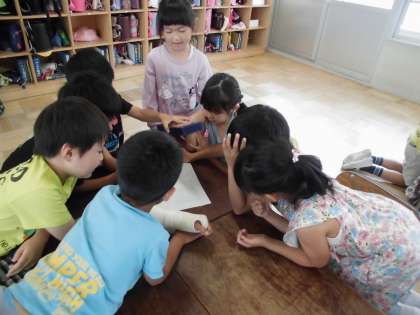 2年生の生活科の時間です。次の時間に発表する予定の野菜を観察したことや野菜の成長についてまとめ,発表の仕方を考えます。