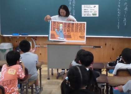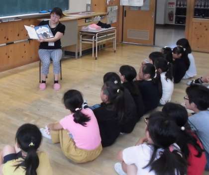 読み聞かせグループ「すずのこえ」の皆さんによる児童への読み聞かせの様子です。本日は3年生と4年生のクラスに入っていただきました。