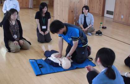 知多市消防署の方を2名お招きして,教職員対象の救急法講習会を行いました。講習会では,人工呼吸や胸骨圧迫の方法,そしてAEDの使用方を実践しました。明日から水泳(プール)の授業が始まる予定です。子供たちの命と安全を守るために,教職員一同,努力してまいります