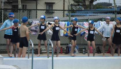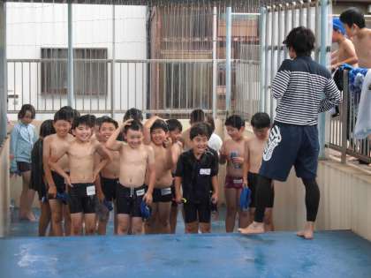 午前中の2年生に続いて,午後からは4年生が今年初めての水泳指導(プール)を行いました。少し水を冷たく感じた子もいたと思いますが,これからもしっかりと取り組んでいきましょう。