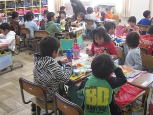 昨日はペア遠足でお弁当。今日は、その予備日でお弁当でした。