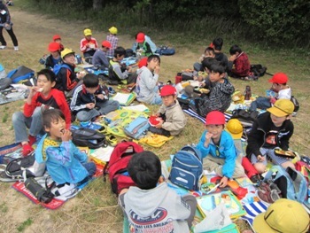 ペアでビンゴをしたり、おうちの人に作っていただいたおいしいお昼ご飯をわいわい言いながら食べたり、遊具で仲良く、楽しく遊びました。