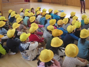 5時間目に大ホールに集まって下校についての話を聞きました。