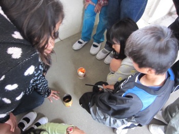 何も言わなくても、グループで円になって、協力して取り組んでいました。