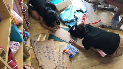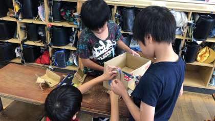 4年生の総合の時間です。学習発表会のテーマ「環境」についていろいろな発表の工夫をしています。どんな発表になるかな。