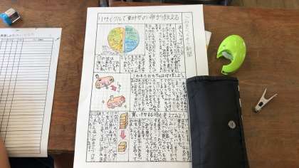 総合の時間に取り組んだ環境に関する新聞についてをみんなの前で発表します。