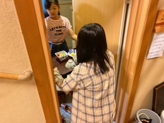 朝食まで時間があったので、ゆっくり支度する班や、早く支度して自由時間として楽しむ班もありました。今から協力して朝ご飯の準備です。