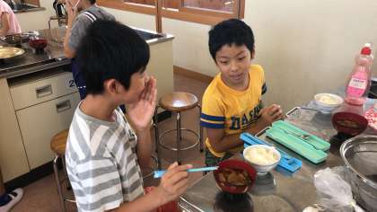 5年生の調理実習の様子です。ご飯を炊いて,みそ汁をつくります。おいしくできたかな。