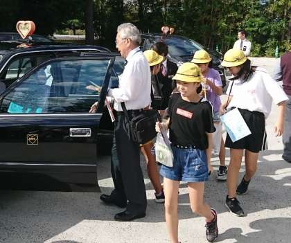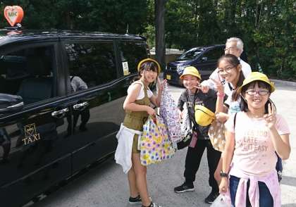 タクシー研修から戻ってきました。これからバスで新田小学校に戻ります。