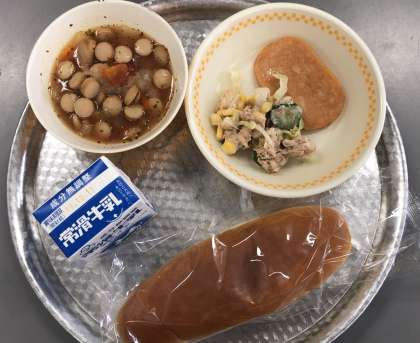 ミルクロール,牛乳,チキンハムステーキ,ツナサラダ,ミネストローネ