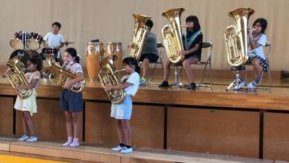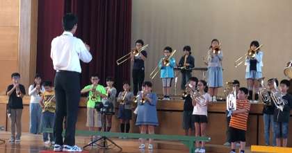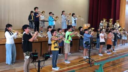 土曜日の登龍門祭の開会式で演奏を披露する金管バンド部が体育館で練習を行いました。当日の演奏が楽しみです。