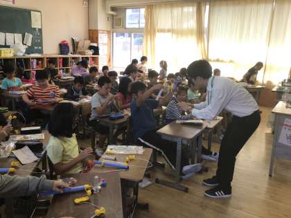 10月15日(火)4年生 理科 とじこめられた空気と水の性質を使って