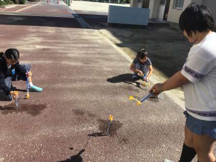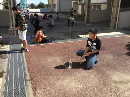 なぜ,水が噴出するのか,どうすればもっと勢いよく水が飛び出すことができるのか,楽しみながら実験をすることができました。