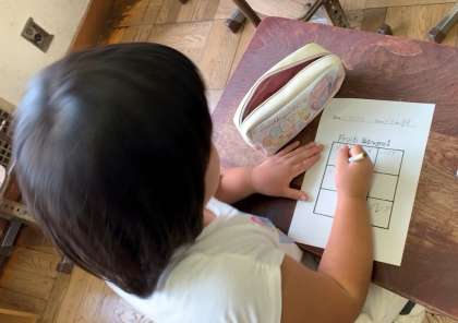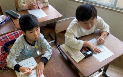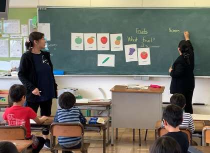 2回目の外国語活動の時間です。前回の「色」に続いて,「くだもの」を英語で表現します。ビンゴカードをつくってみんなで発音します。