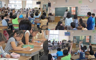 今日は学校訪問。知多市教育委員会や知多教育事務所の方々にきていただき、児童や教師の授業の様子を見ていただきました。