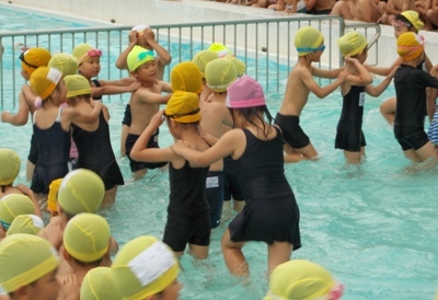 1年生も3年生もまず水に慣れることが大切です。それから、少しずつ泳げるようになるとよいですね。