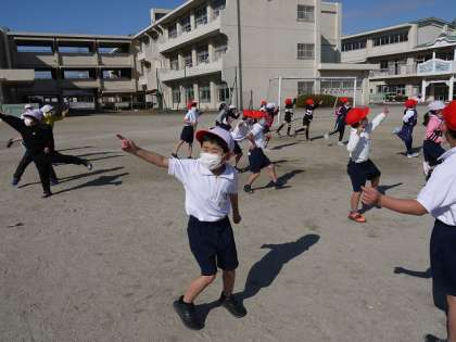 運動会で踊ったダンスを準備運動として踊りました。みんな音楽に合わせてノリノリでした。しっかり覚えていました。