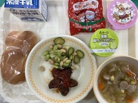 ごはん、ジャガイモのそぼろ煮、サケの塩焼き