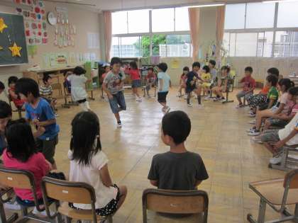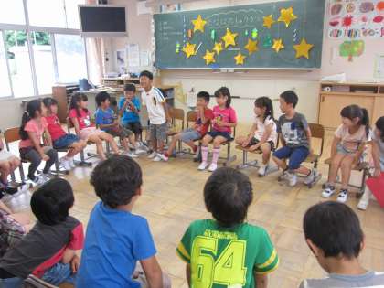 たなばた集会をしました。「たなばたさま」の歌を歌ったり,たなばたのお話を聞いたりしました。願い事の発表や,ゲームもしました。願い事の発表では,「将来の夢」や,「家族のしあわせ」等いろいろなお願いが聞かれました。みんなの願いがかなうといいですね。
