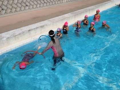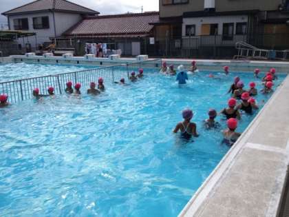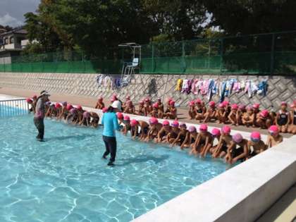 9月4日(水)1・2時間目に、2年1・2組の水泳がありました。1学期に比べると、バタ足が上手になっていました。夏休みに、たくさん泳いだのかな?水深95cmの中プールにも入りました。