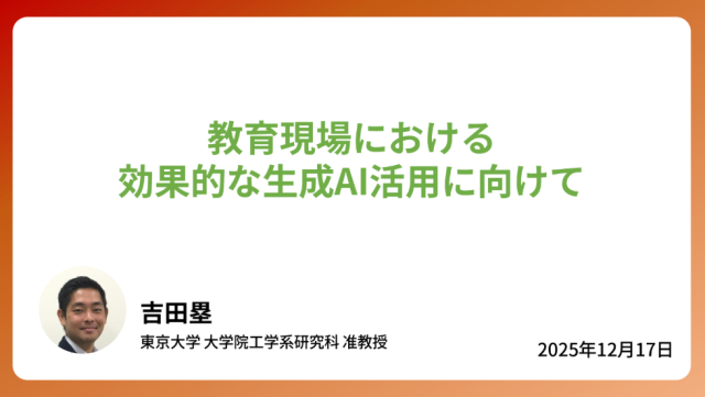 東京大学の吉田准教授から、最新の生成AIの情報も含めて、教育現場における効果的な活用方法を教えていただきました。