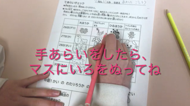 各学級で保健委員会が作成した風邪予防キャンペーンの動画を視聴し、手洗いを励行します。