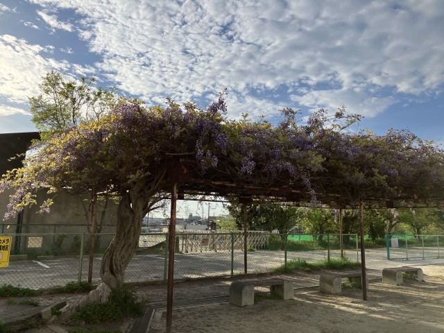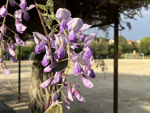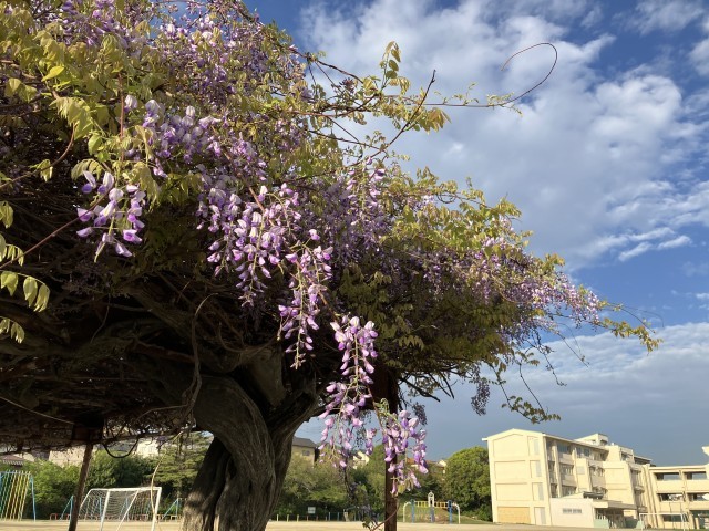校庭にある藤の花が咲き始めました。