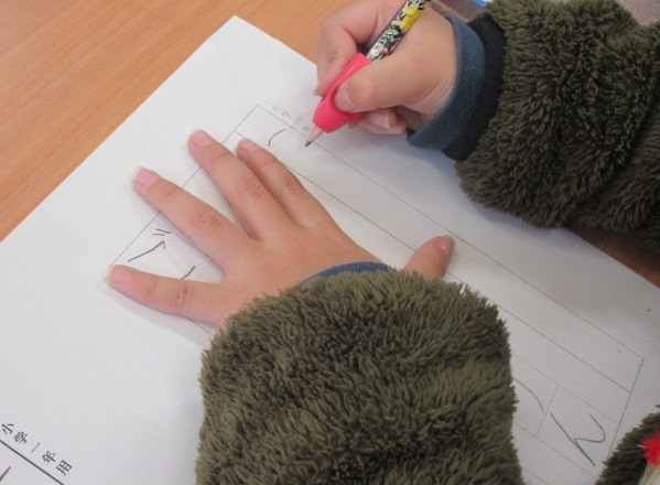 担任の先生から、のびのびと書くポイントの説明を受け、それに習って丁寧に書いていました。