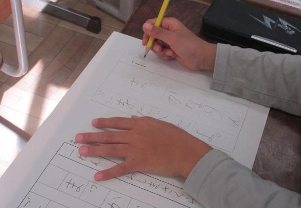 1年生がカタカナの学習をしていました。この2学期からカタカナの学習がスタートし、本日が初めてでした。