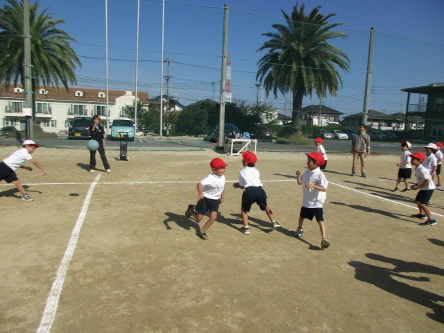 1年生の子どもたちが、元気よくドッジボールをしていました。