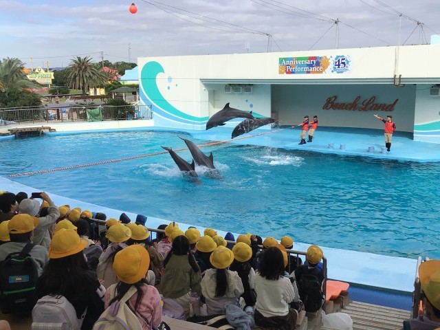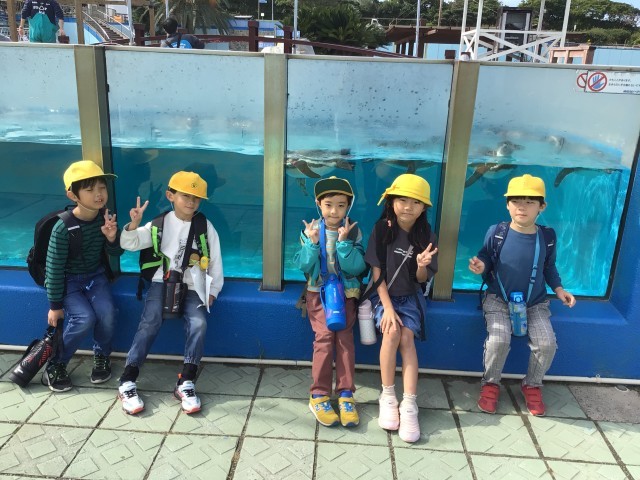 天気もよく、楽しく見学をすることができました。グループ活動もみんなで協力できました。バックヤードでは、赤ちゃんの海亀を触ることができました。イルカショーは迫力あるショーを興味をもってみました。おいしいお弁当ありがとうございました。