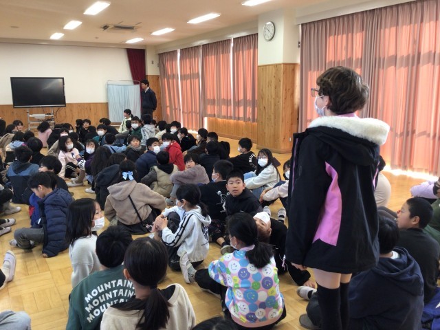 初めは、隣の子とアルファベットを言ったり聞き合ったりして、動物を当てるゲームをしました。