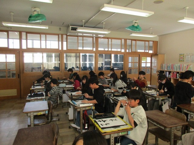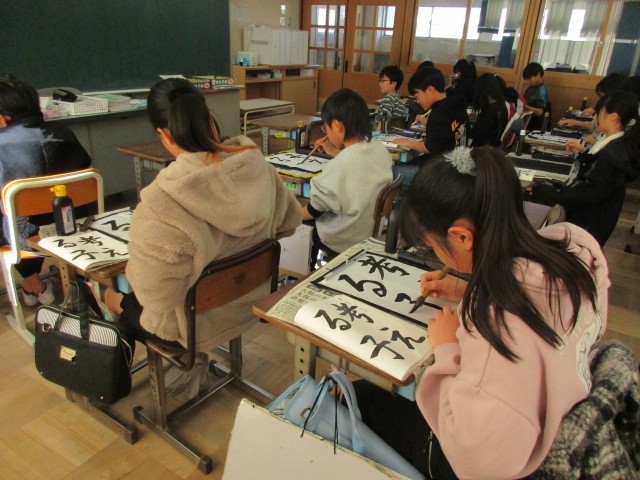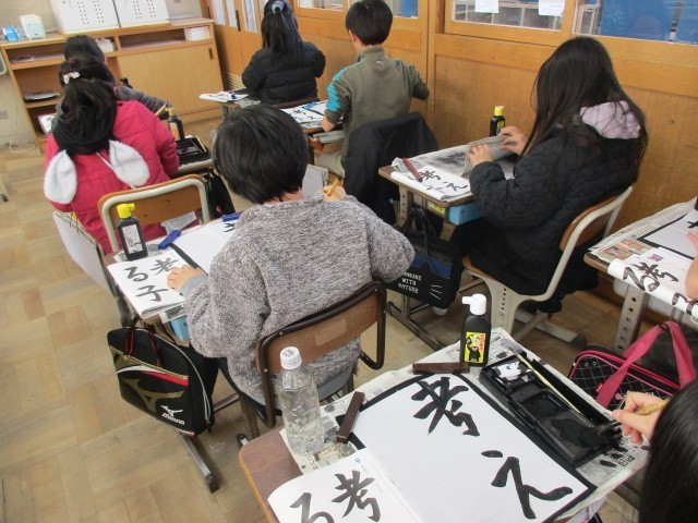 心を落ち着け、集中して書きました。最近ではICTの活用で、タブレット上で文字を選択したり、キーボードで入力したりする機会が多くなっていますが、自分らしく筆で書く字も、そのよさがあります。