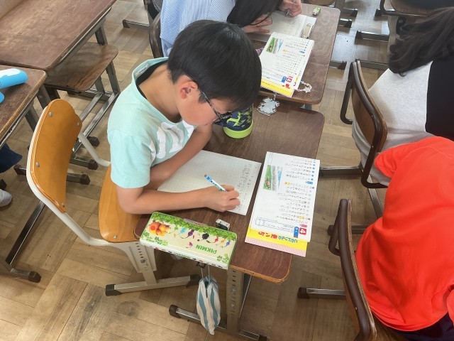 2組では4時間目にやり方を教えました。給食準備の時間になってもまだやりたいという姿勢で取り組む子もいました。
