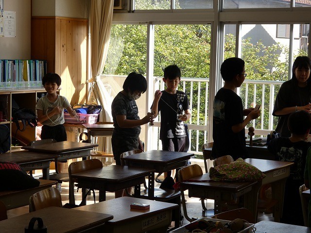 汗をかきながら、教室に入るとすぐに水分を補給する児童がたくさんいました。