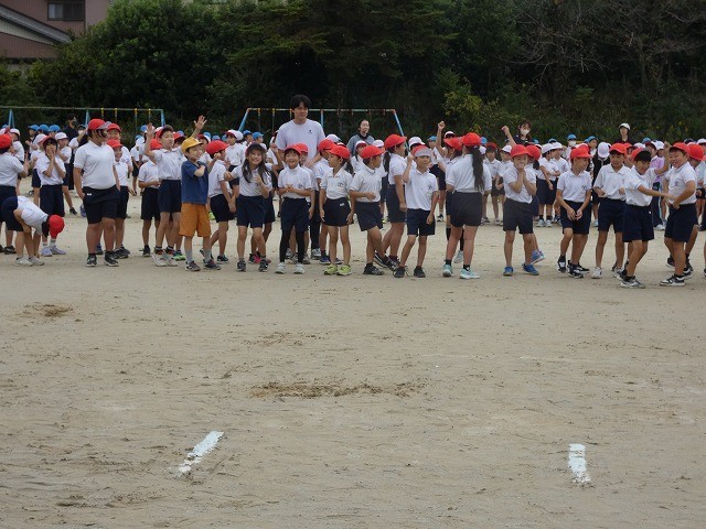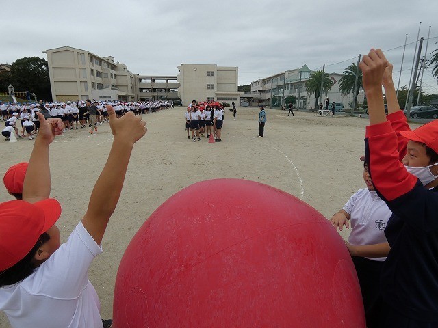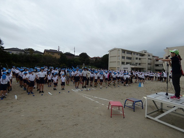 今日の1・2時間目に運動会の全体練習を行いました。