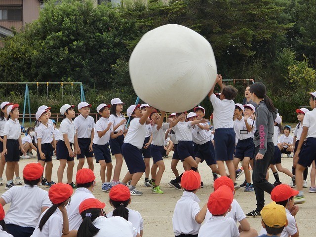 大玉送りは1回だけ練習して、赤組が1位になりました。
