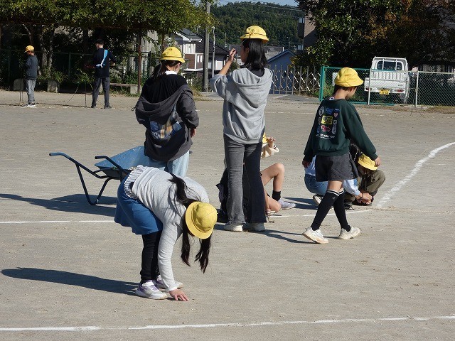 緑化委員は、運動会に向けて校庭の雑草を取り除く活動をしていました。