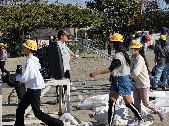5・6年生の子どもたちが、委員会ごとに運動会の準備をしています。