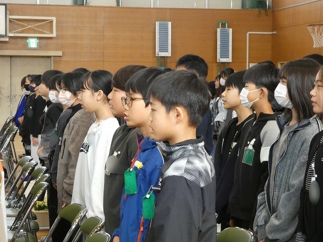 体育館の中が温かな雰囲気になり、6年生が在校生と先生方にお礼の言葉を伝えました。