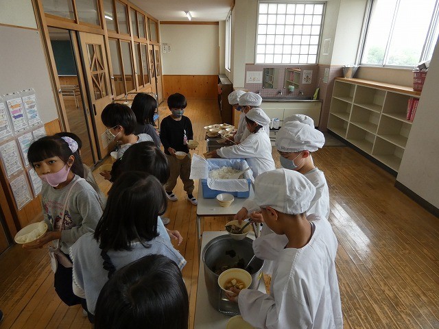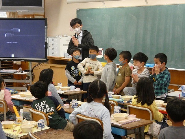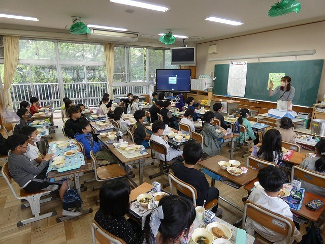 健康な体を作るためにはもちろん、食べ物や食べ物に携わる人たちへの感謝の気持ちを忘れずに、おいしく大切に食べることができるとよいですね。」という栄養教諭の思いを、給食委員の子どもがとても上手に放送してくれました。