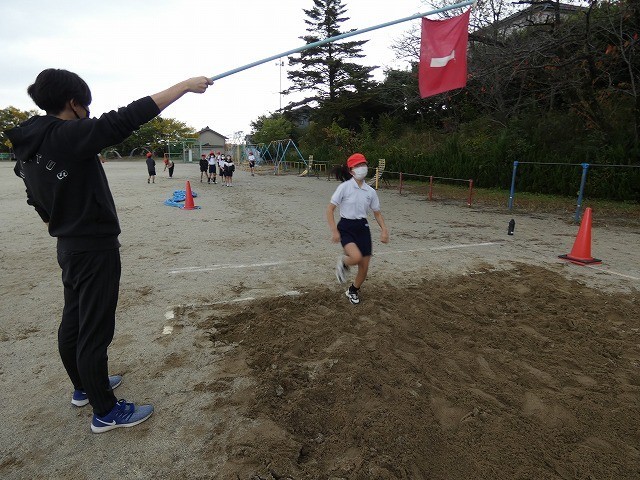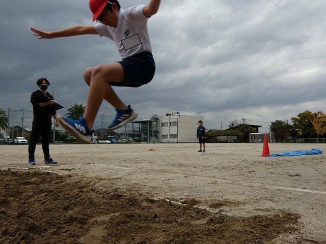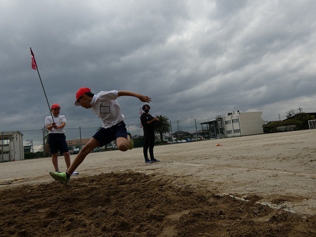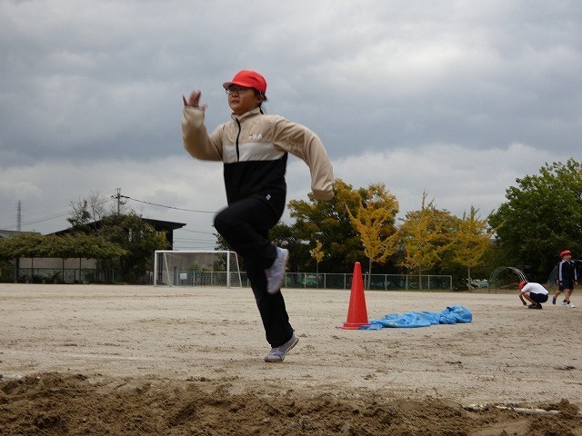 リズミカルな助走から、力強く踏み切って跳ぶ練習をしていました。