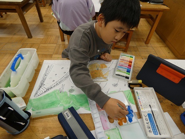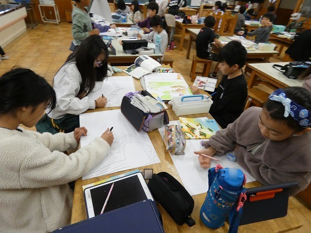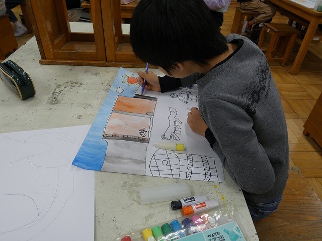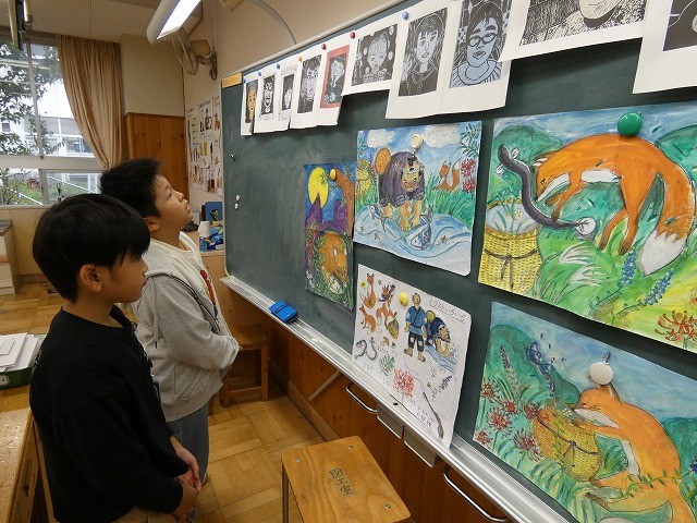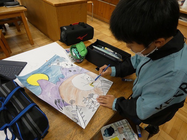 国語の「ごんぎつね」と関連付けて、自分の好きな場面を想像して描くことがめあてです。