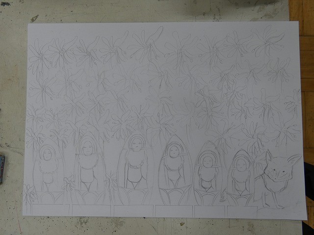 自分の顔をタブレットで撮影し、下書きを書きました。