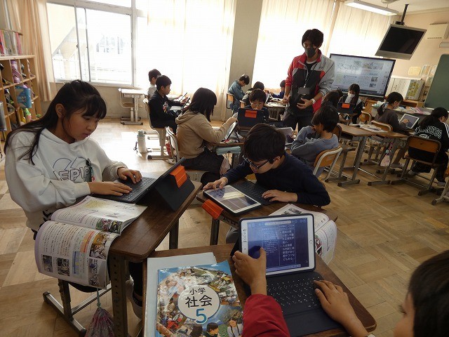 教科書以外にも、動画やインターネット、生成AIなど、子どもたちは調べ方を自己選択して、課題を追究しています。