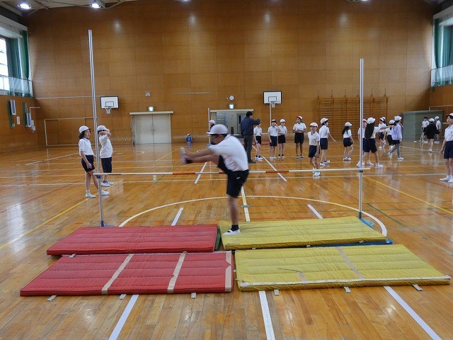子どもたちは、高跳びに挑戦するのが初めてですが、目標をもって意欲的に取り組んでいました。
