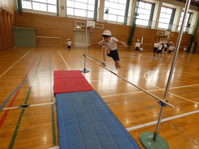 4年生の体育では高跳びに取り組んでいます。