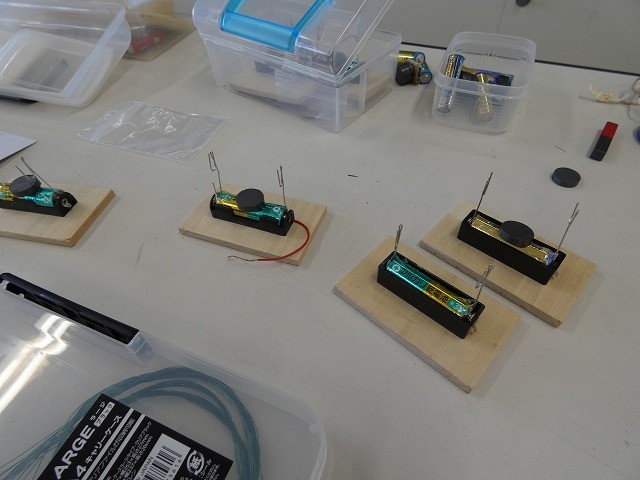 棒磁石と砂鉄を使った実験や電流を流す実験などをしました。