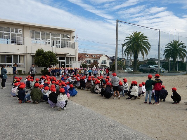 近くにある3つの保育園から園児たちが新田小学校に交流に来ました。