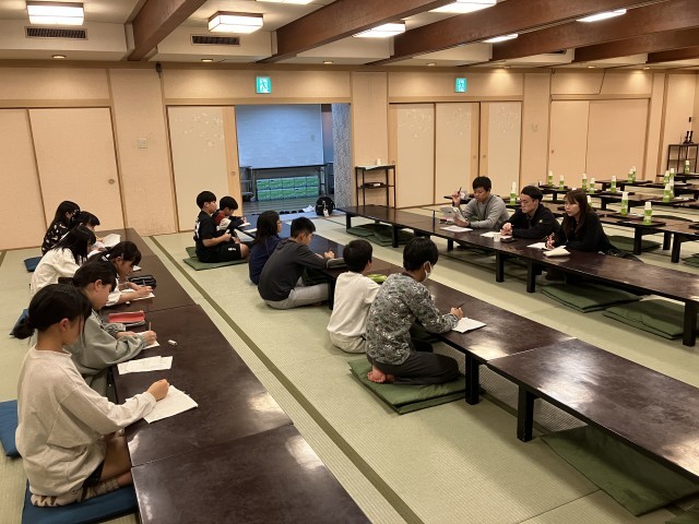 子どもたちはお風呂に入り、部屋でゆっくり過ごしています。部屋長は、反省会をしています。この後、就寝です。